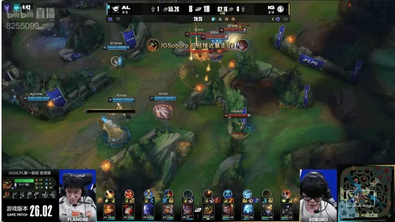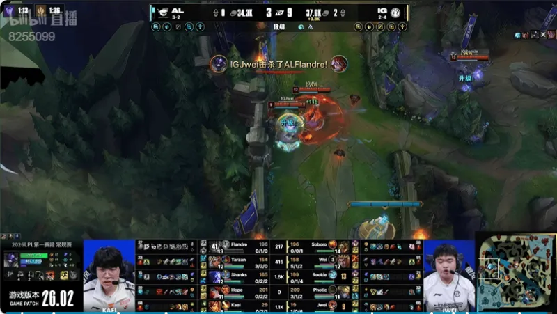6分钟:双方河道混战,IG更胜一筹打出二换四