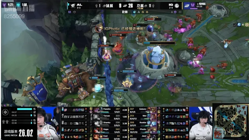 27分钟:双方河道爆发团战,AL集火击杀对方杰斯但是鳄鱼绕后无人能挡,IG一换五打出团灭