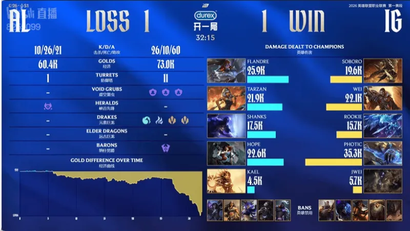 虎扑01月27日讯 IG红色方,AL蓝色方